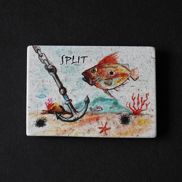 Magnet s motivom splitske povijesne jezgre, oslikan na pločici od bračkog kamena, donosi duh Dioklecijanove palače u vaš prostor. Umjetnički prikaz jedne od najpoznatijih znamenitosti Splita očarava bojama i detaljima, pretvarajući ovaj magnet u jedinstvenu uspomenu ili poklon s dalmatinskim karakterom. Spoj kamena, kulture i baštine u malom formatu.